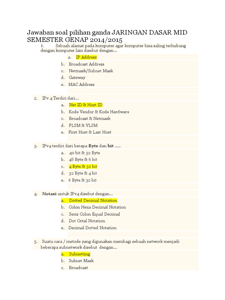 295724228 Jawaban Soal Pilihan Ganda Jaringan Dasar Mid Semester Genap 2014
