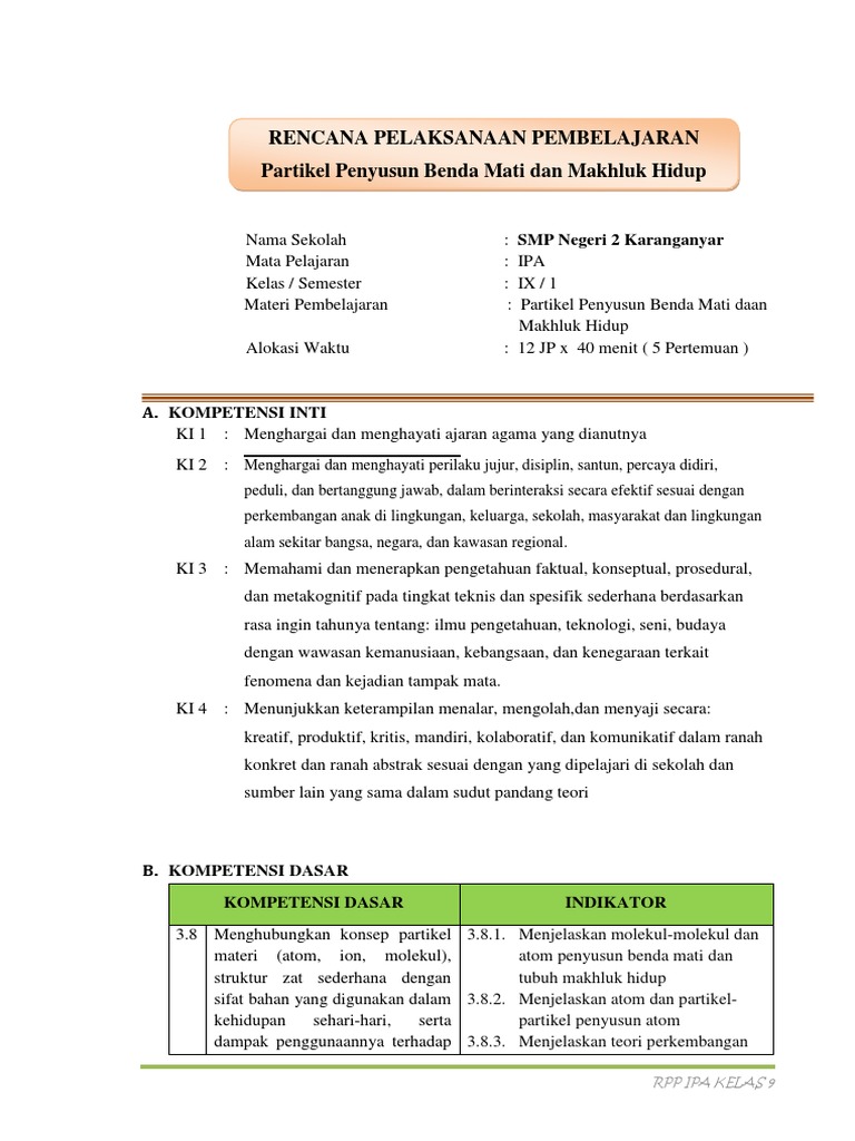 Kumpulan Soal Ulangan Harian IPA SMP Kurikulum 2013- Bebarapa hari yang lalu pernah saya posting mengenai Materi IPA SMP Kelas VII begitu juga dengan Lembar Kerja Siswa nya. Molekul dalam benda mati dan makhkluk hidup Pada intisari materi pelajaran Partikel Penyusun Benda mati dan Makhluk Hidup yang telah disajikan terdahulu disebutkan bahwa partikel adalah satuan dasar bagian terkecil dari suatu materi atau benda yang masih memiliki sifat bahan atau benda tersebut. 12 13 jp atau 5 kali pertemuan asumsi 5 jpminggu.
