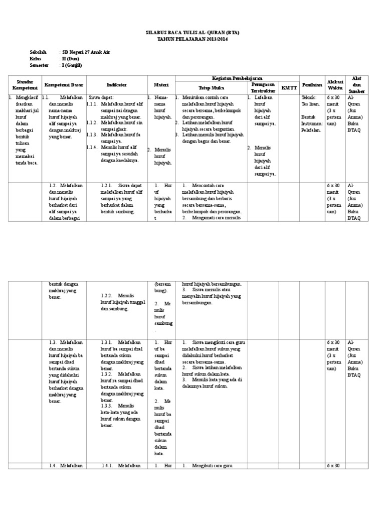Silabus ini merupakan bagian pelengkap dari RPP 1 lembar revisi 2020 berdasarkan Edaran MENDIKBUD No. Download Full PDF Package. Silabus Btq Sd Kelas 1 6.