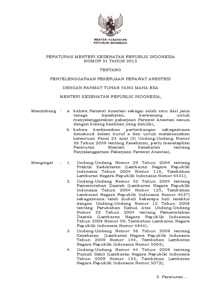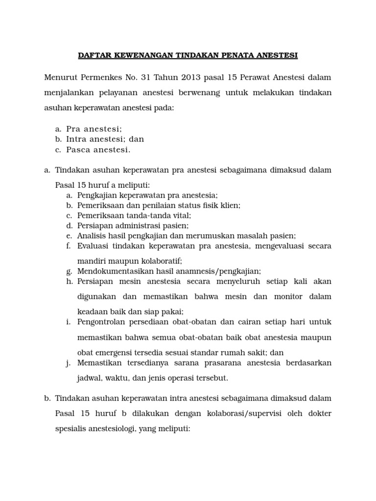 Pmk No 31 Ttg Pekerjaan Perawat Anestesi