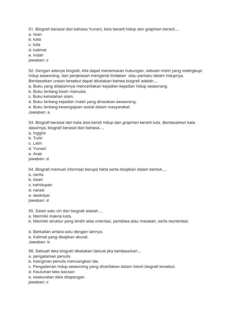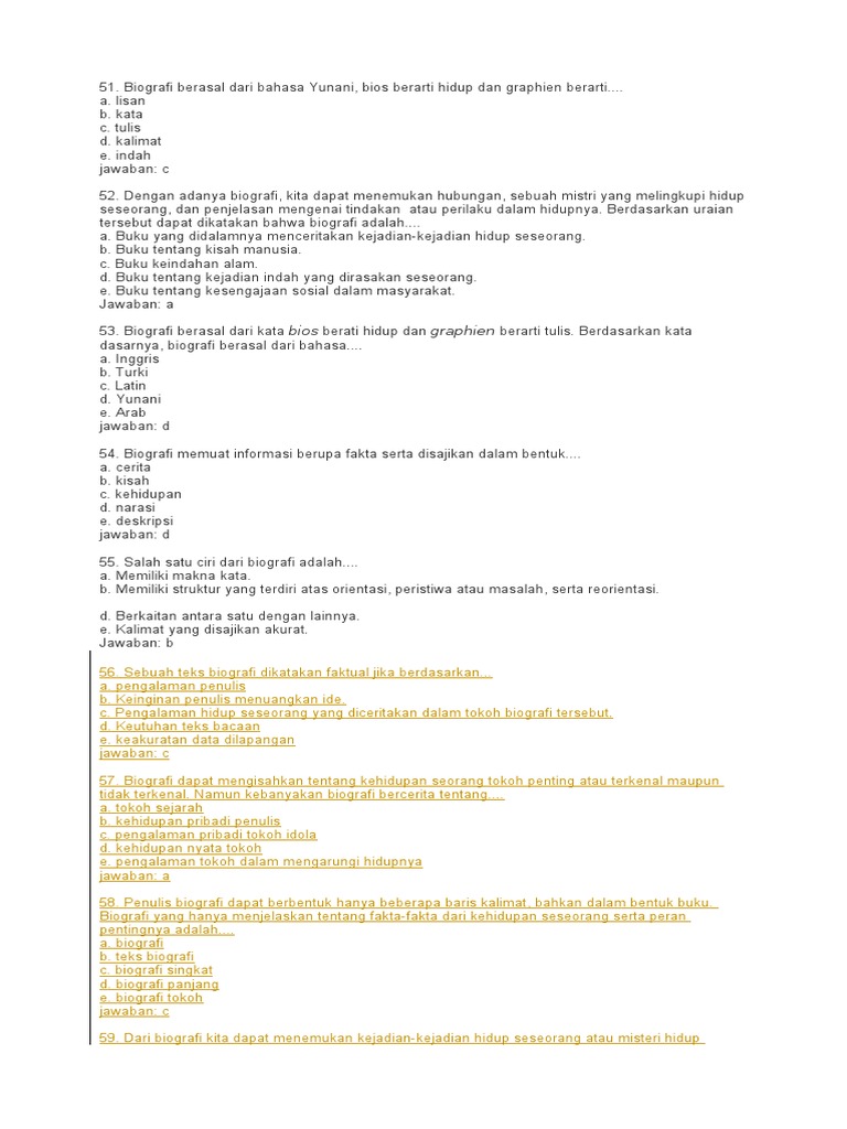 Keutuhan teks bacaan e. Keinginan penulis menuangkan ide. Contoh Soal Teks Biografi Pilihan Ganda dan Kunci Jawaban Teks Biografi merupakan suatu tulisan yang mengulas mengenai kehidupan seseorang atau cerita hidup seseorang selama ia masih hidupBiografi singkat hanya mengulas mengenai kenyataan-kenyataan yang terjadi didalam kehidupan seseorang dan fungsi pentingnya kepada lingkungan.