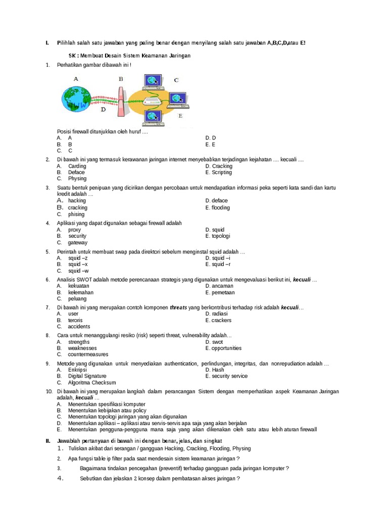 Soal desain sistem keamanan jaringan. Kawan-kawan Guru se Indonesia kali ini saya akan share Bentuk Soal pilihan Ganda sebanyak 50 butir Soal kali ini adalah Soal Materi Teknik Komputer dan Jaringan kelas XII yuk simak Soal nya dan copy paste semoga. Soal PG TKJ Kelas XII Membuat Sistem Keamanan Komputer Admin. Contoh dari Personal Firewall adalah.