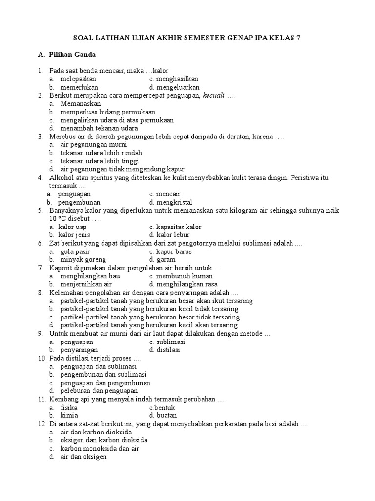 Soal Latihan Ujian Akhir Semester Genap Ipa Kelas 7
