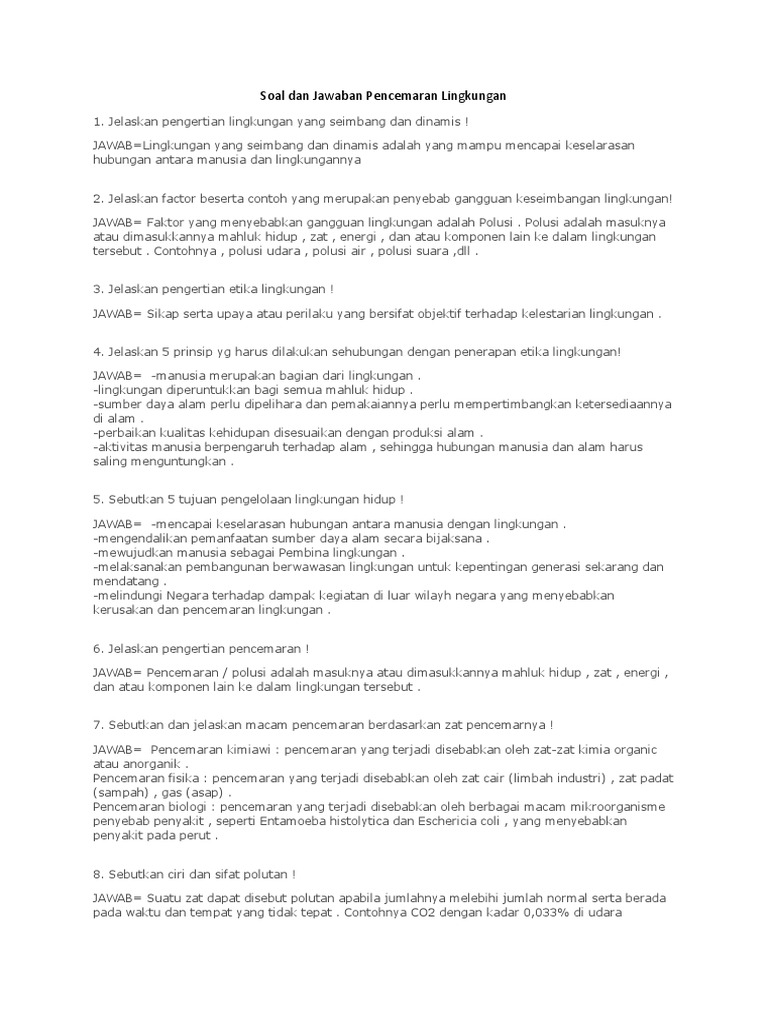 Soal Essay Tentang Pencemaran Lingkungan Beserta Jawabannya Pdf Download File Guru