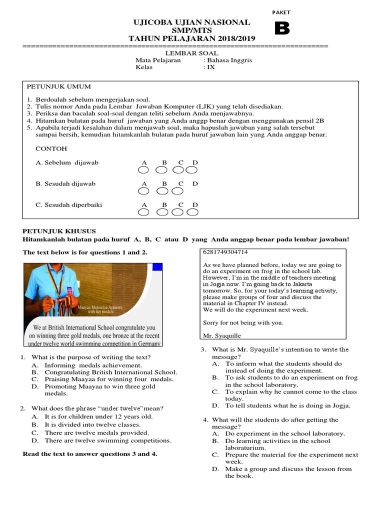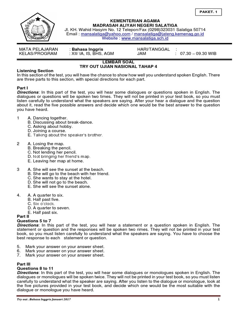 Soal Latihan Ujian Nasional Bahasa Inggris Paket 2